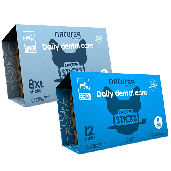 Naast het voeden van je hond, geeft Naturea ook prioriteit aan de mondgezondheid van de hond. Om de opbouw van tandsteen en tandvleesontstekingen tegen te gaan, heeft Naturea een lijn tandensticks ontwikkeld, zonder chemicaliën of reinigingsmiddelen. Deze heerlijke sticks verminderen gebitsproblemen door de mechanische werking tijdens het kauwen.